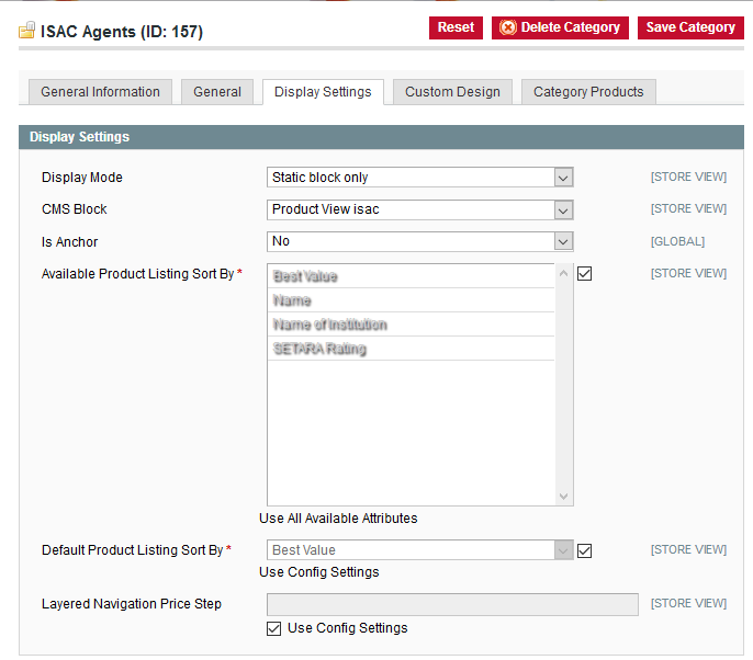 Backend > Catalog > Manage Categories > select the category (menu item) > Display Settings