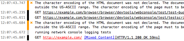 Requests appear in black text. If you are on a secure connection, mixed content from HTTP sites will appear in red.