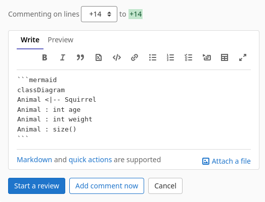 Since GitLab 10.3. you can use Mermaid Show archive.org snapshot in GitLab comments: Gitlab Doc Show archive.org snapshot .