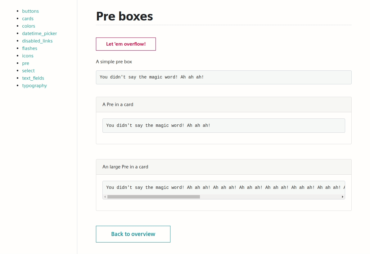 The reason is that flexbox items default to min-width: auto, which leads to issues in calculating the available space for these pre elements. See: https://stackoverflow.com/a/28909778 Show archive.org snapshot