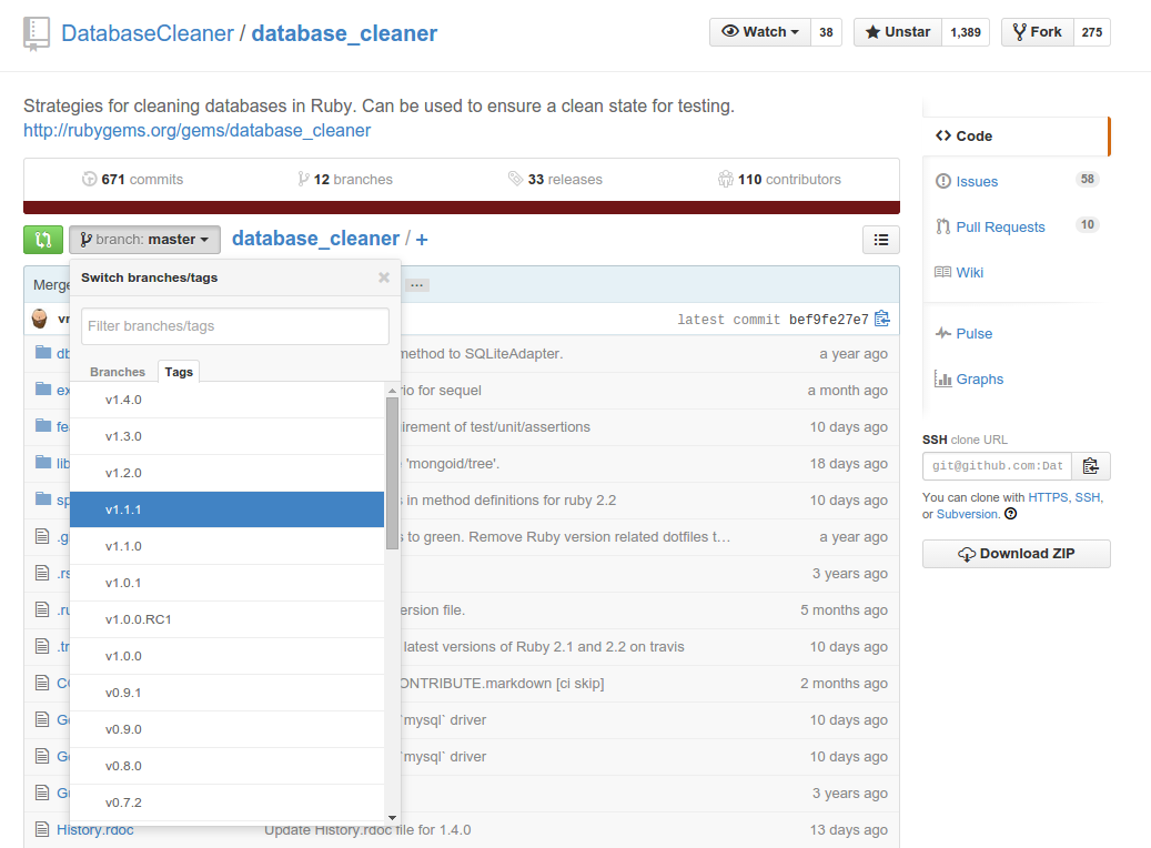 When a gem author releases a new version to Rubygems, usually a tag with the version number (e.g. v1.2.0) is created an pushed to Github, so everyone can check out or take a look at the source code at this point version release at a later time.