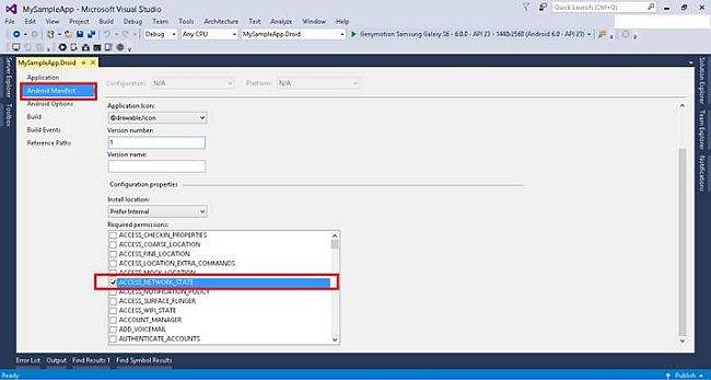 In Android-Projekten muss der App die entsprechenden Zugriffsrechte erteilt werden (ACCESS_NETWORK_STATE und INTERNET):