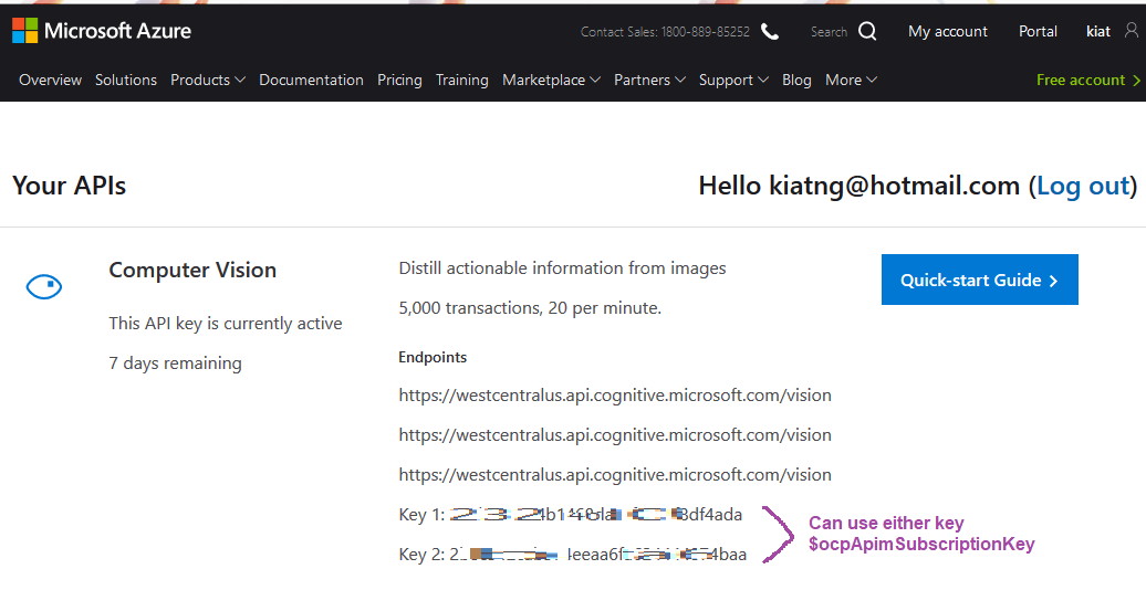 Get the Microsoft Azure Computer Vision API Key here Show archive.org snapshot .